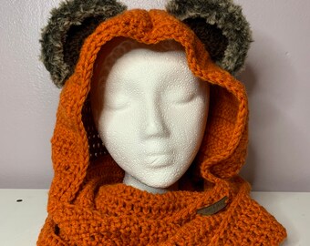 Leave the front and bottom part open. This Ewok hood is super cute for dress-up or maybe as a Halloween costume. Cosy and great for winter cosplay Christmas comic cons and Star Wars events.