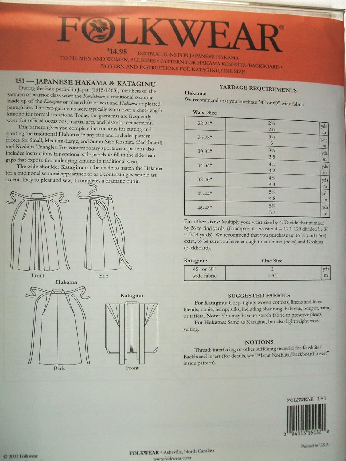 Apr 20 2013 - Explore M Ts board Hakama on Pinterest. Pattern for bear jacket pants belt and hakama. Folkwear 151 Japanese Hakama Kataginu Samurai Warrior Vest Pants Skirt Sewing Pattern Pattern Only 1495.
